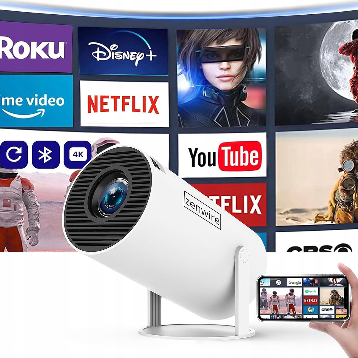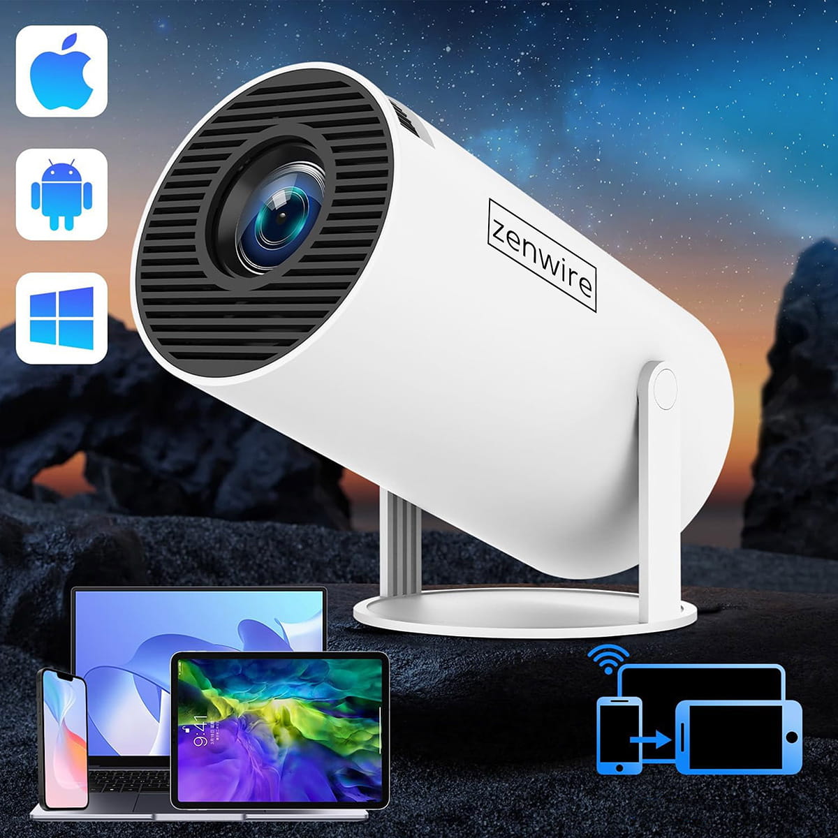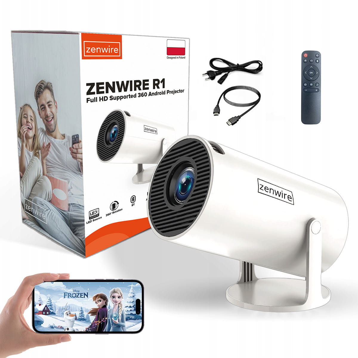 ΜΙΝΙ ΠΡΟΒΟΛΕΑΣ 360 ANDROID 12 WiFi 6 Bluetooth ΜΕΤΑΔΙΔΟΤΙΚΟΣ προβολέας FULL HD Zenwire® R1