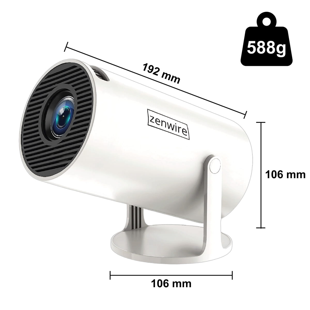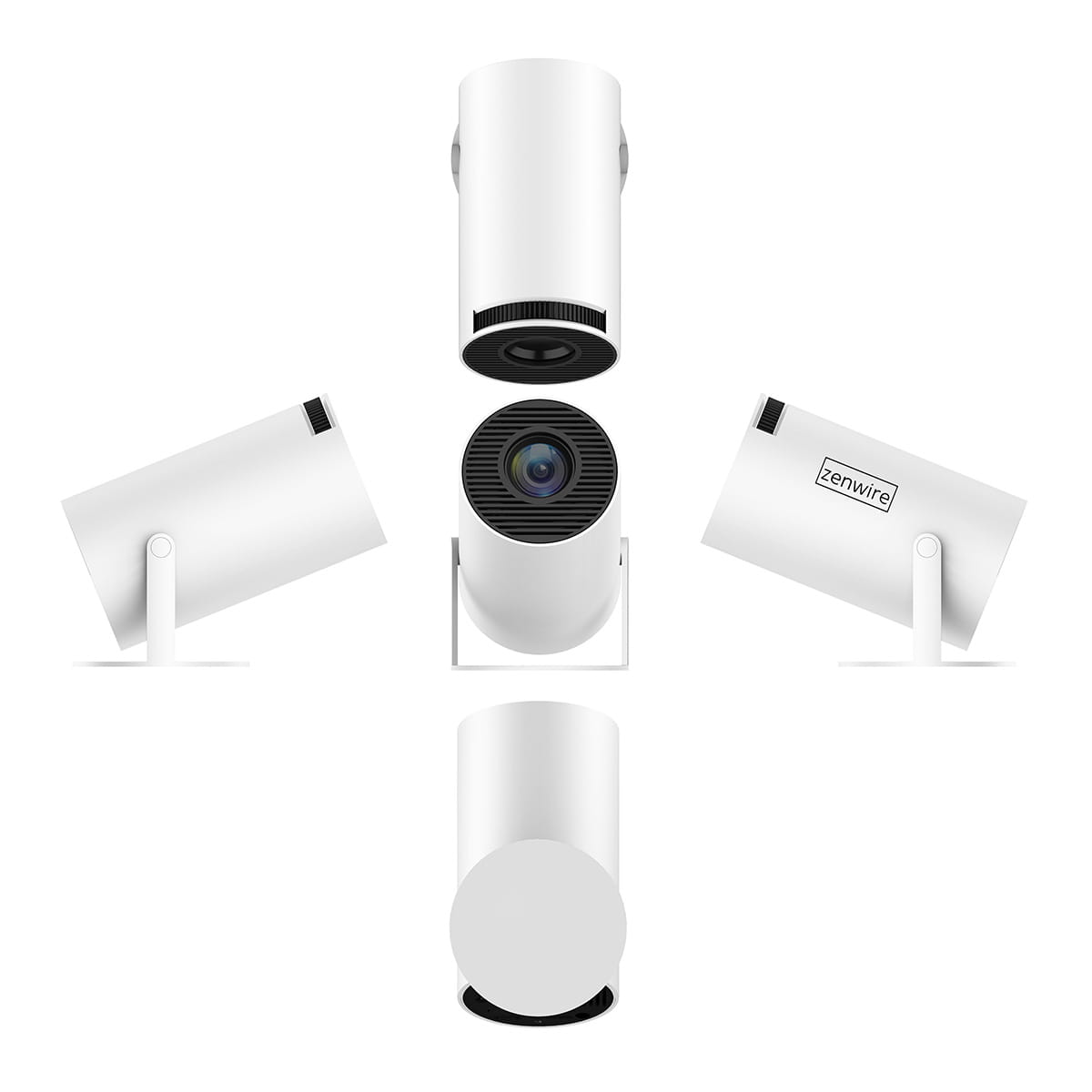 ΟZenwire R1 είναι εξοπλισμένος με περιστρεφόμενη βάση 270 μοιρών που επιτρέπει οποιαδήποτε ρύθμιση. Αυτό επιτρέπει στον προβολέα να καταλαμβάνει πολύ μικρό χώρο. Μπορείτε ακόμη και να τον τοποθετήσετε δίπλα στο κρεβάτι σας στο κομοδίνο σας και να προβάλλετε ταινίες στον τοίχο ή ακόμη και στο ταβάνι! Αποφασίστε μόνοι σας πώς θέλετε να χρησιμοποιήσετε αυτόν τον προβολέα με τον πιο βολικό τρόπο.